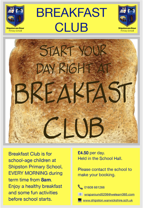 Places in the Breakfast Club are offered to pupils of Shipston-on-Stour Primary School and priority is given to those requiring five mornings per week.