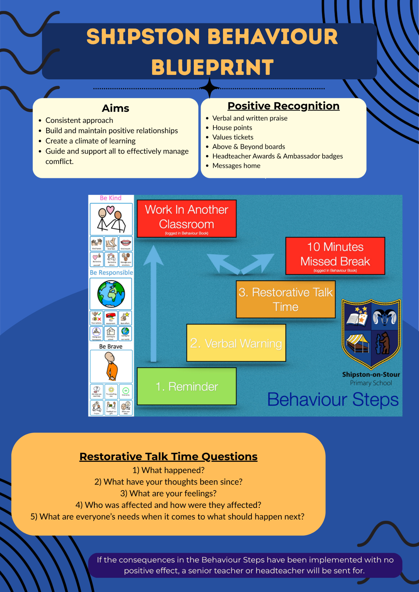 Just as with academic subjects, ‘behaviour’ is not something that children can just ‘do’. It is learned through effort, clear direction and support from caring adults and by accepting that mistakes are made and should be learned from to allow growth to occur. We teach behaviour using as it underpins all other success that we aspire to.